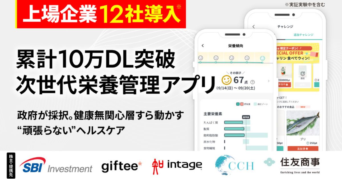 募集タイトル | 〈累計10万DL突破〉政府採択の次世代栄養管理アプリが”頑張らない”ヘルスケアを実現。買い物データを自動で栄養素に変換する独自技術に上場企業も熱視線 |