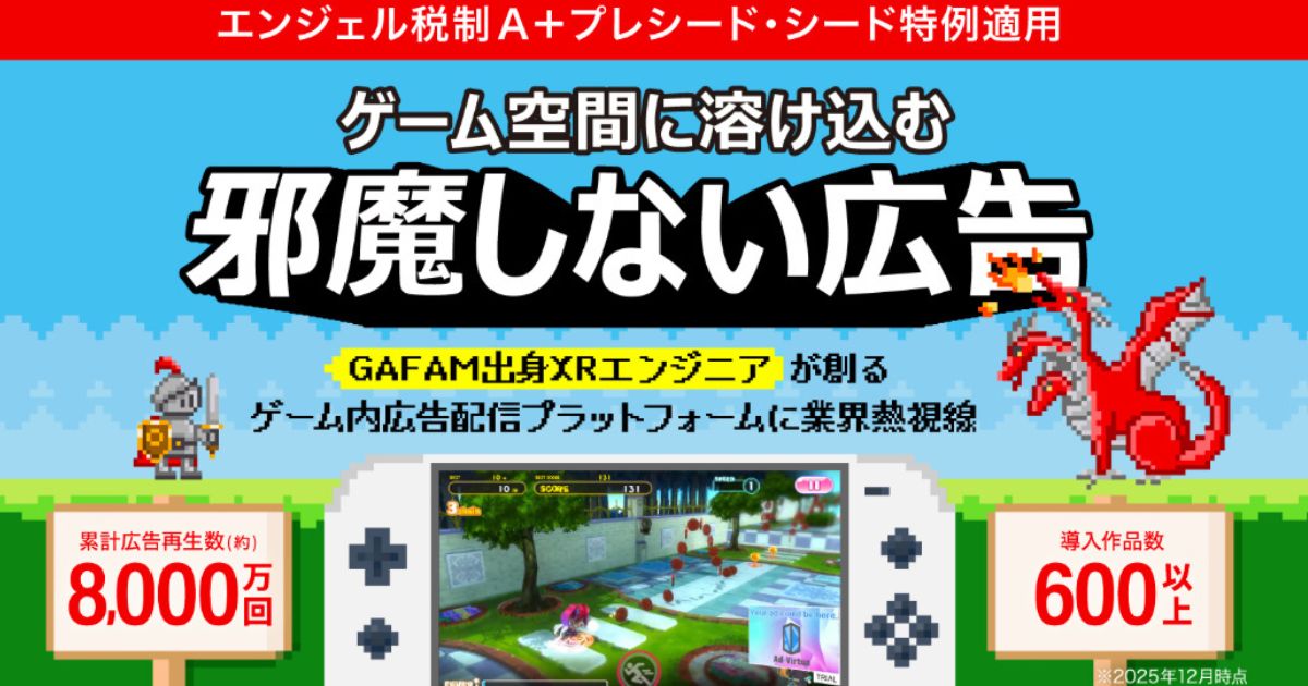 | 募集タイトル | 〈業界熱視線〉累計再生数8,000万回突破の”ゲーム空間に溶け込む広告”配信プラットフォーム。GAFAM出身エンジニアが新市場を創造「アドバーチャ」 |