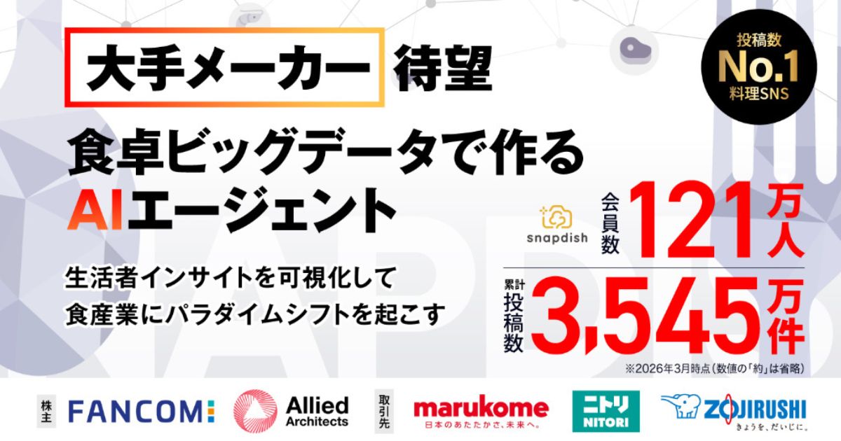 募集タイトル〈前期黒字化〉累計投稿数3,500万件超の食卓ビッグデータを基盤に大手メーカーも期待する業界特化型AIエージェントを開発「スナップディッシュ」