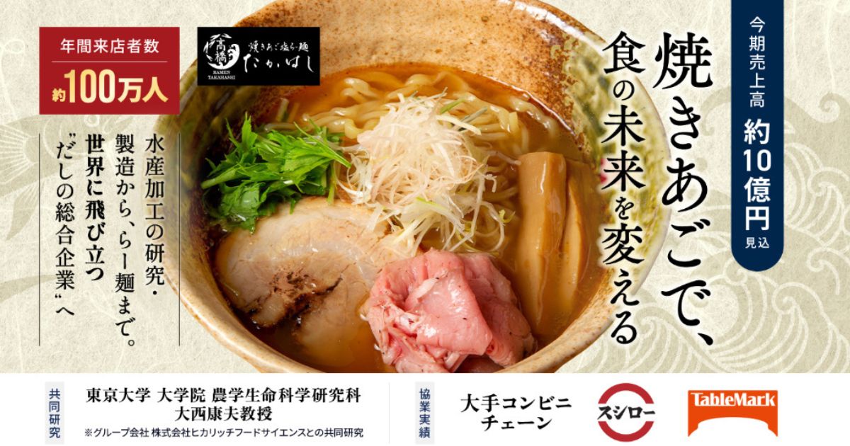| 募集タイトル | 〈年間約100万人来店〉連日行列の人気らー麺チェーン「焼きあご塩らー麺たかはし」。水産加工の研究・製造から世界に飛び立つ“だしの総合企業”を目指す「ヒカリッチアソシエイツ」 |