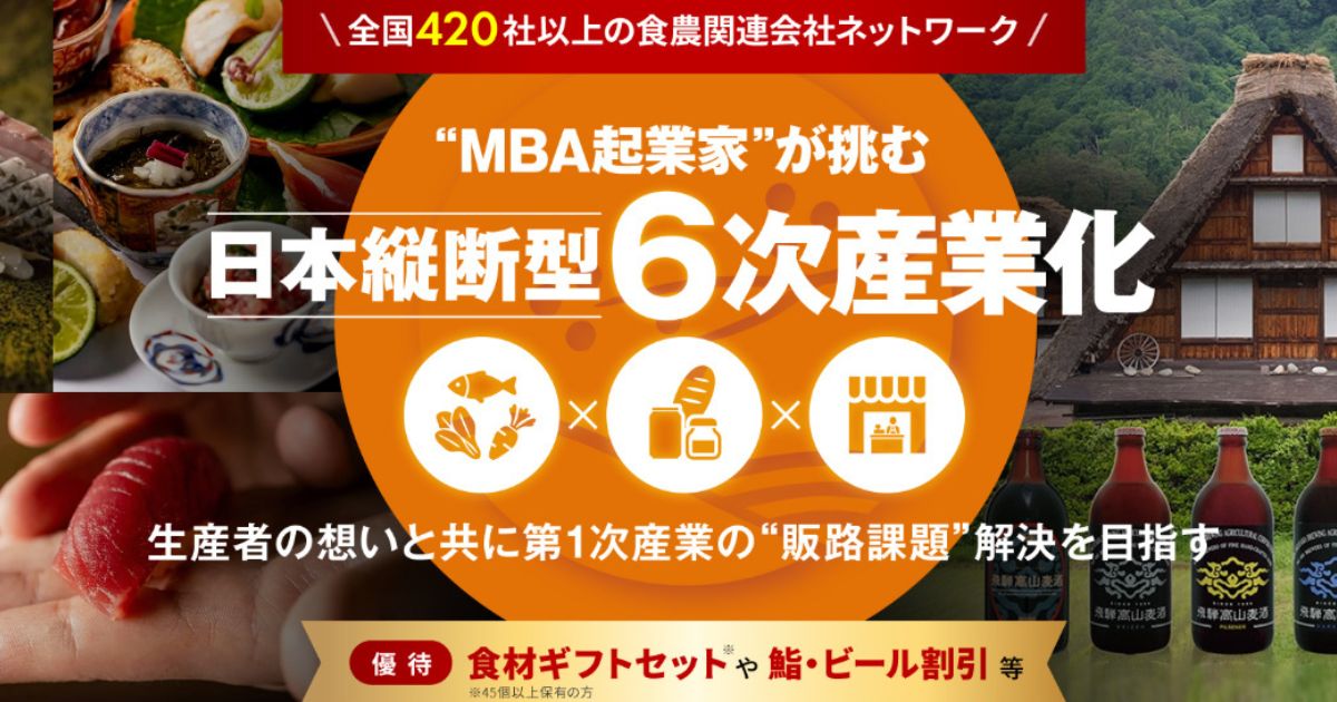 事業内容全国の農林漁業者が培ってきた食材や技術、地域ブランドの価値を次世代へつないでいく6次産業化カンパニーを目指している企業です。単に飲食店の展開自体を目的とするのではなく、1次産業の価値をより多くの消費者へ届けるために、生産、加工、流通、販売を一体で担う体制の構築を目指す